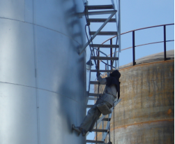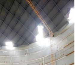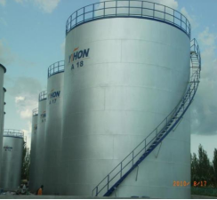潤滑油貯罐內壁上的應用: 大慶引航潤滑油儲油罐由于儲罐常年不能都滿負荷儲油,長期沒有在油里浸泡的部份也會產生銹蝕,從而影響油品質量。封銹金屬漆能很好的解決這類難題,保證儲油罐在不裝滿或不使用時產生銹蝕。確保油品儲存過程中的純凈度。具體見圖33、圖34。經過十幾年應用效果很好。